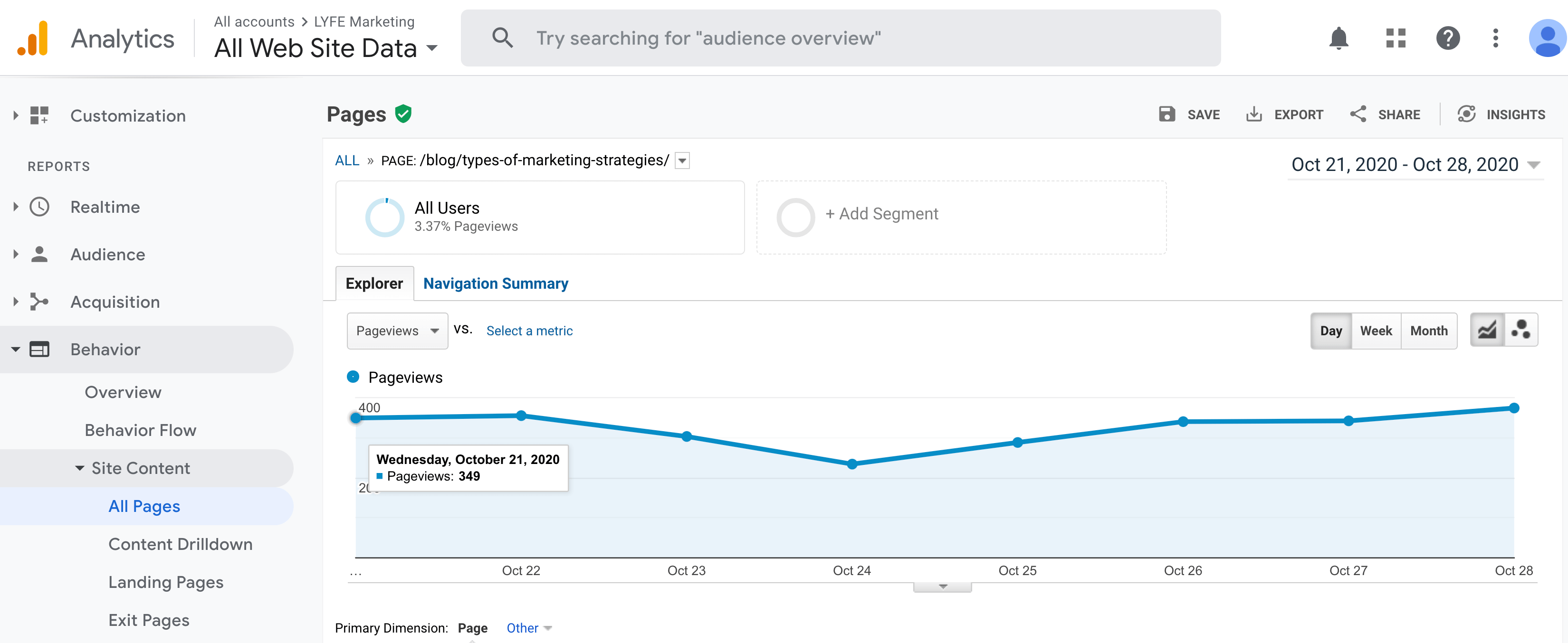 For example, a single blog post that we published has been generating 300-400 views per day at LYFE Marketing.