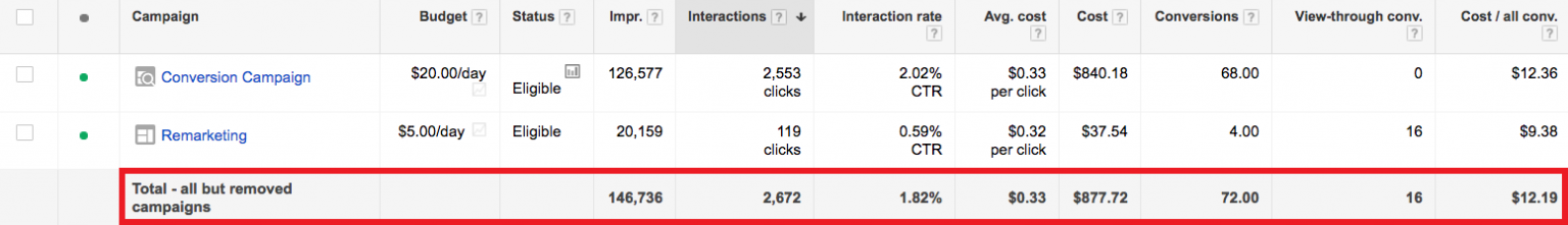 We produced 2,672 clicks, a little over 146 thousand impressions, and 72 conversions at an average cost per conversion of $12.19 for a $30 product.
