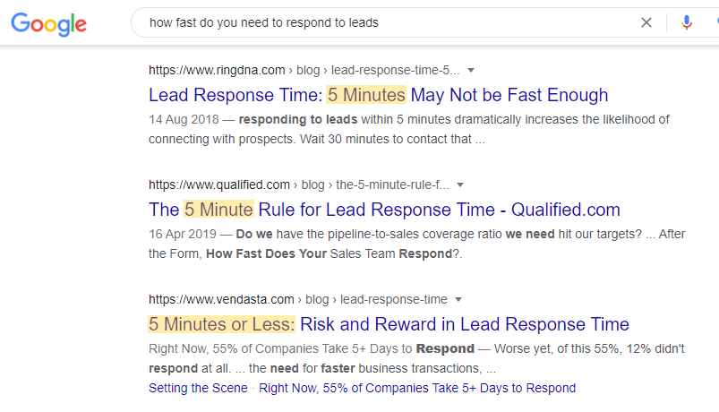There are several studies that say the “optimal lead response time is 5 minutes or less.”
