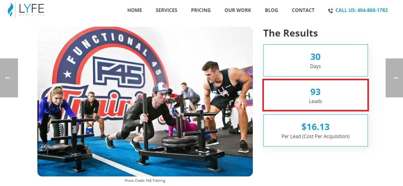 And we generated 93 leads in just 30 days for this fitness client using Facebook ads.