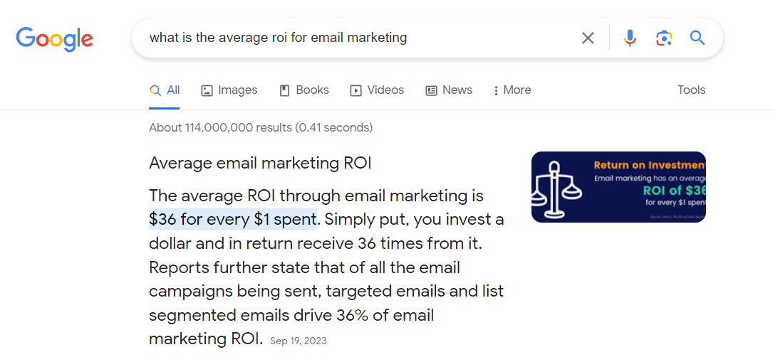 Outperform email?! Those are some big claims, Facebook! The average ROI of email marketing is $36 for every $1 spent.