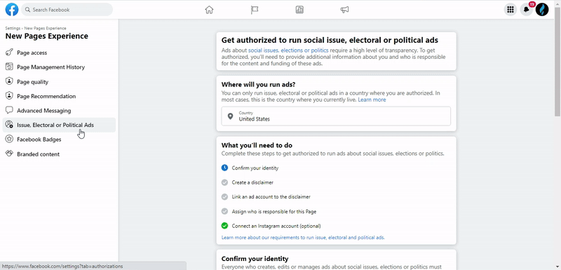 If you aren’t planning on running ads regarding social issues, elections or politics, you can skip this section.