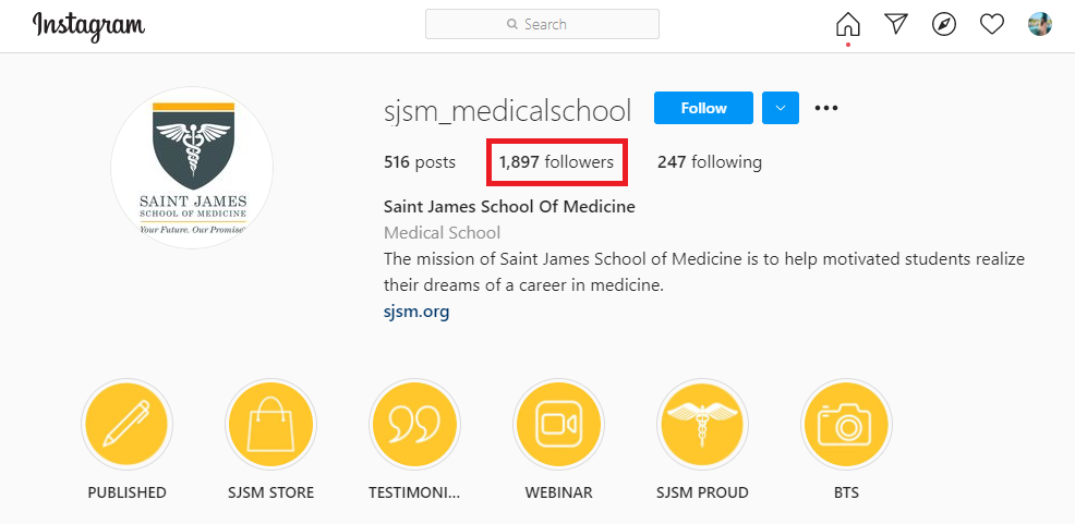 And lastly, we helped this school of medicine get over 1,800 followers.