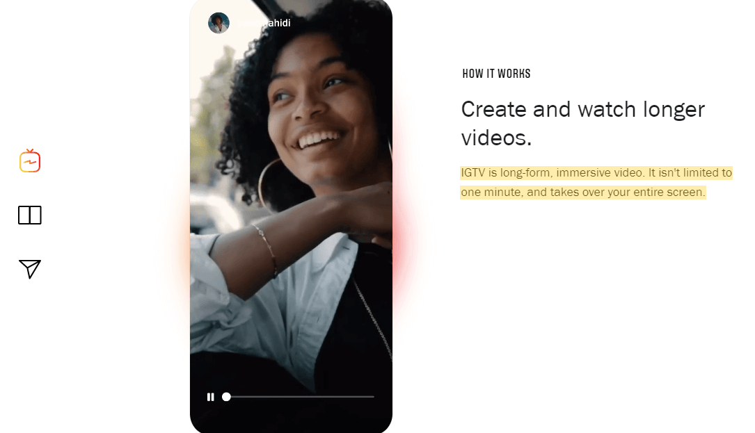 “IGTV is long-form, immersive video. It isn’t limited to one minute, and takes over your entire screen.”