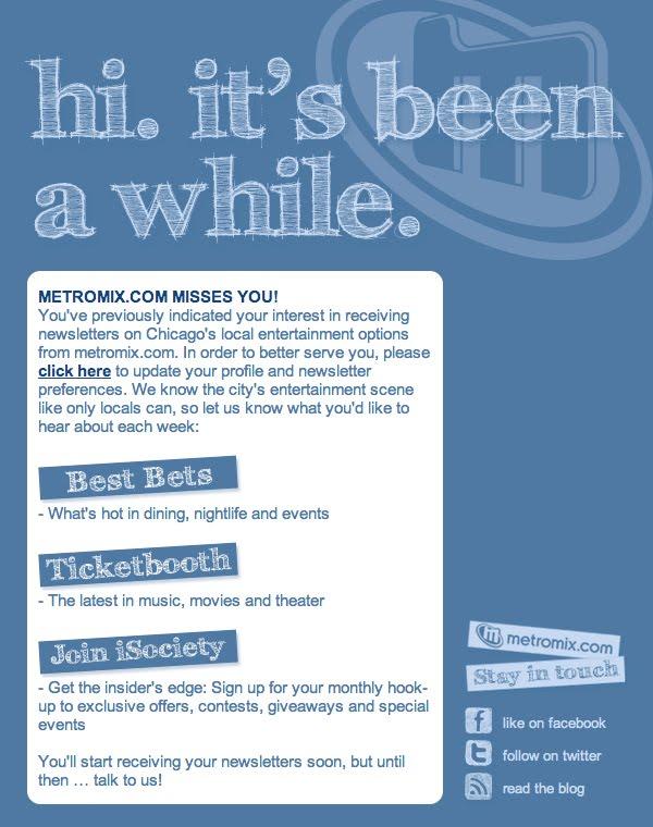 Then, run a re-engagement campaign to introduce them back into your regular mailing schedule.