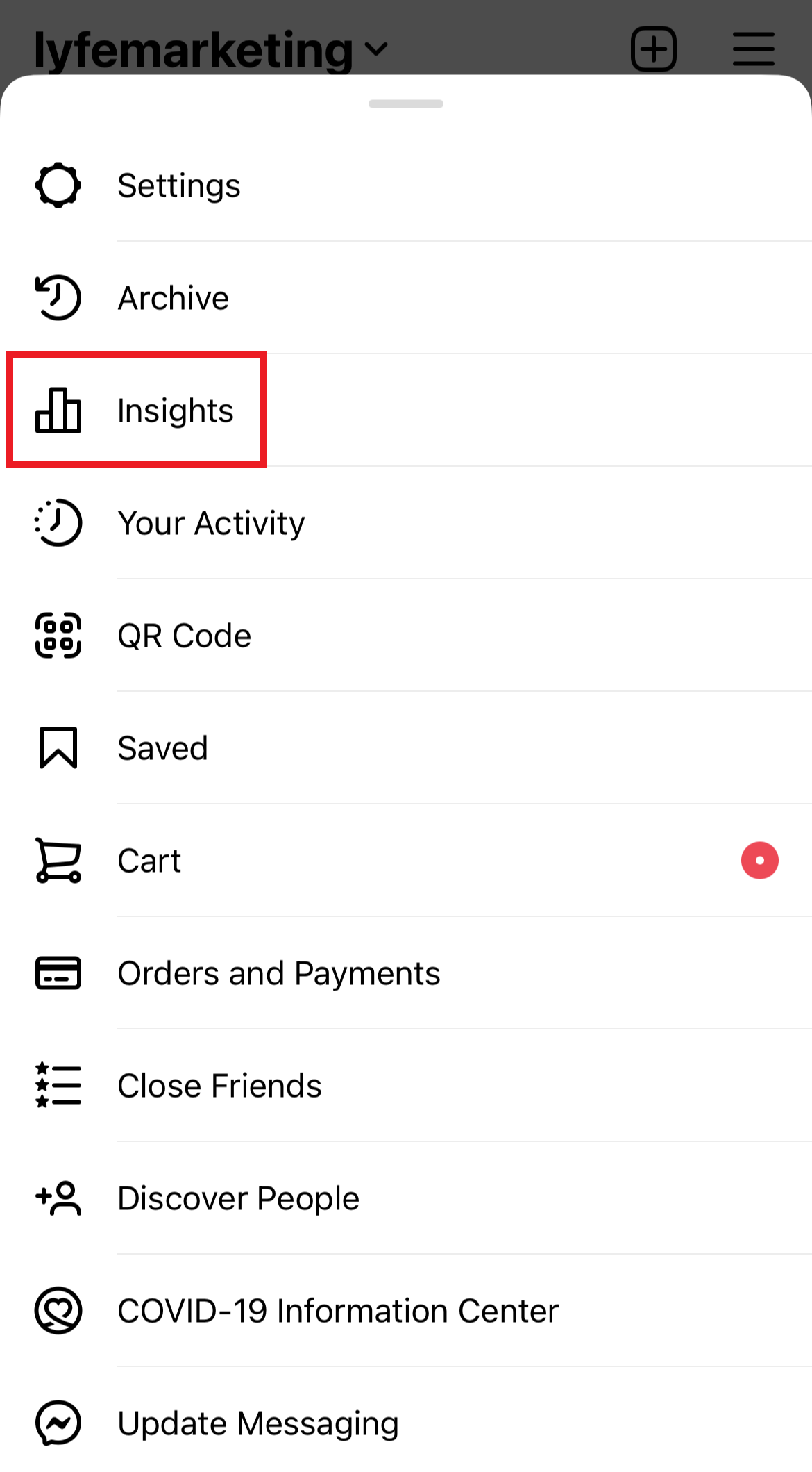 So when you log into Instagram and look at your business profile, you should see the Insights button right there in the middle.