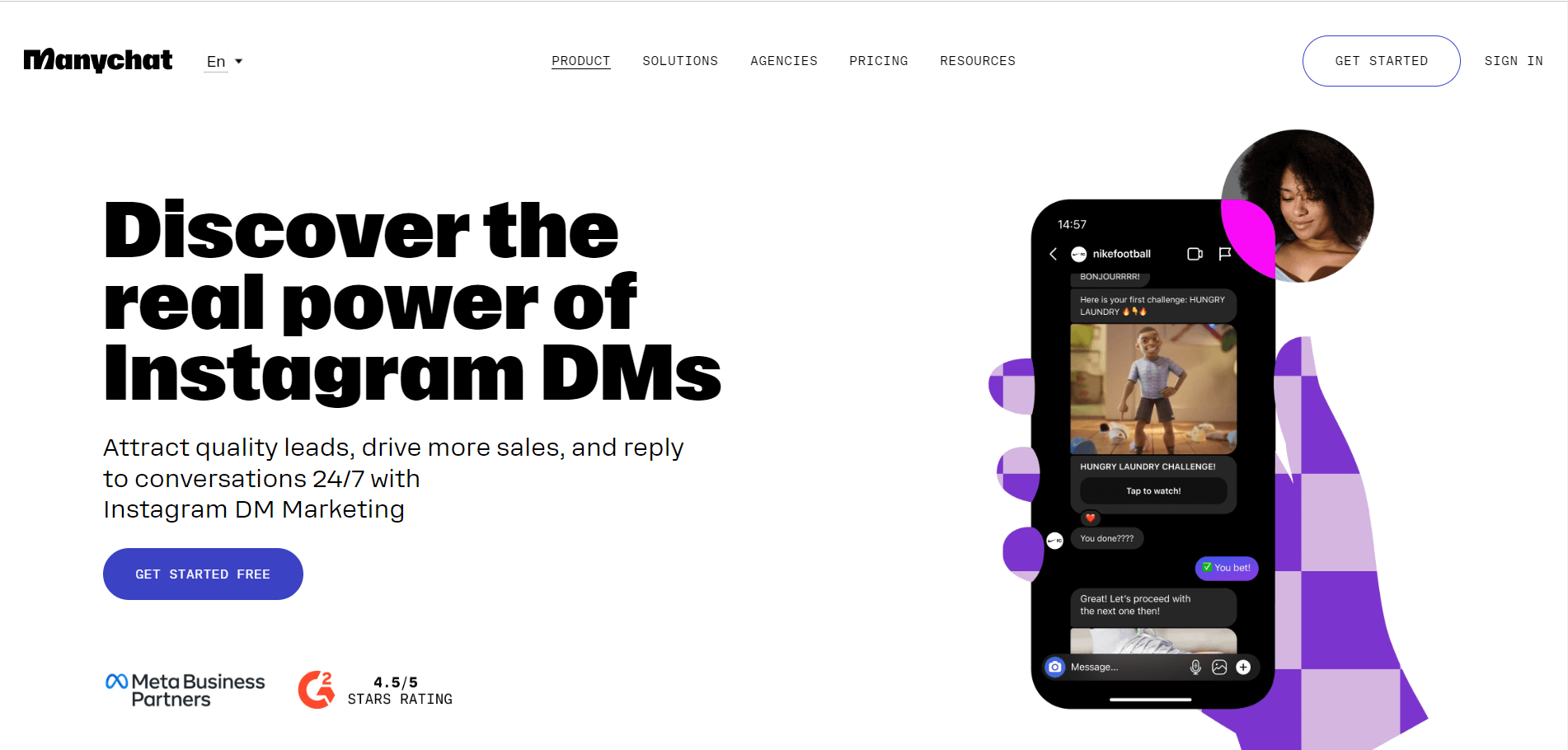“Manychat’s Instagram DM is simple to use. No code visual interface. Automates your marketing, customer support, lead generation process, and much more.”