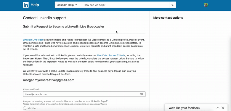 After you submit the form, LinkedIn takes 3 to 4 business days to get back to you.