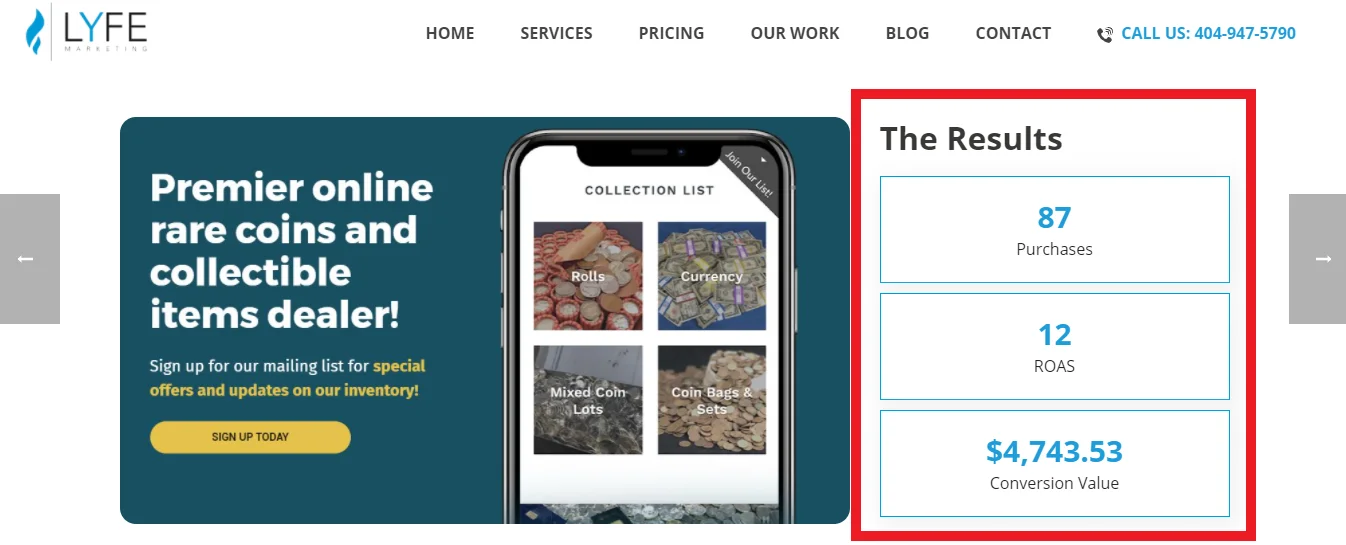Our efforts led our client to generate over 900 purchases and about $12,000 in revenue!
