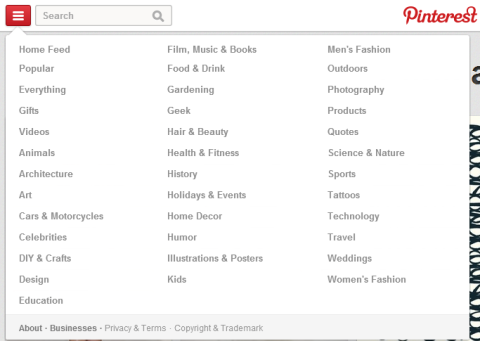 These categories help make it easier for Pinterest users to find what they are interested in and repin it on their boards.