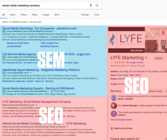 Search engine marketing (SEM), on the other hand, is using paid ads to get your messages in front of your target audience.