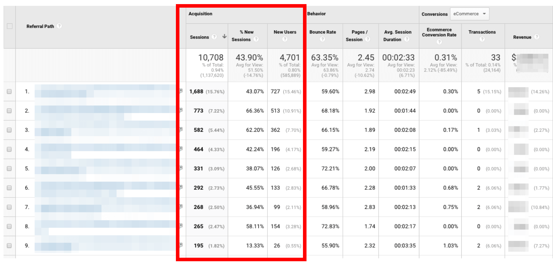 If you notice that the number of sessions starts to drop, then you can revisit the referral source to identify issues.