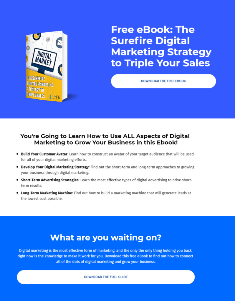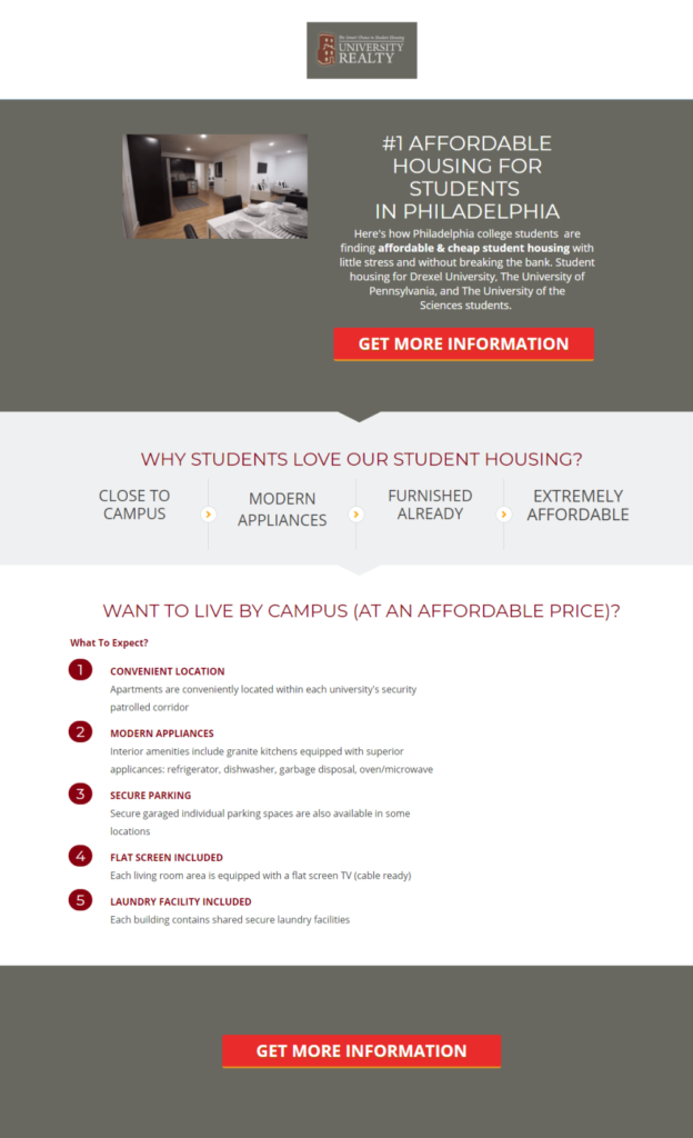 This page should have a clear call-to-action eliminating any opportunity for your audience to divert away from that call-to-action.