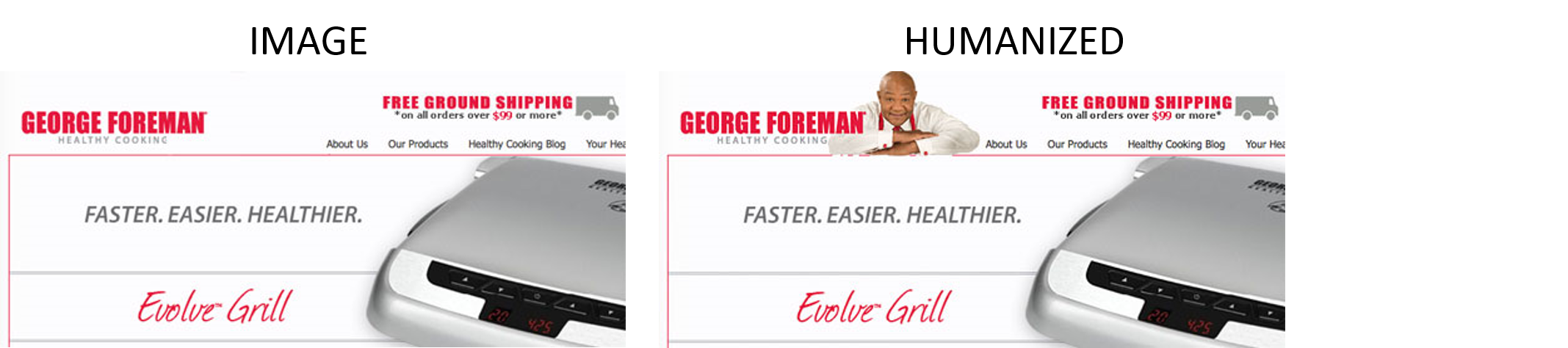 Georgia Foreman’s smile resonates better with customers. Since he is the brand and his face immediately builds trust and goodwill with his online store. Human images across your website will help your visitors find your site more trustworthy.